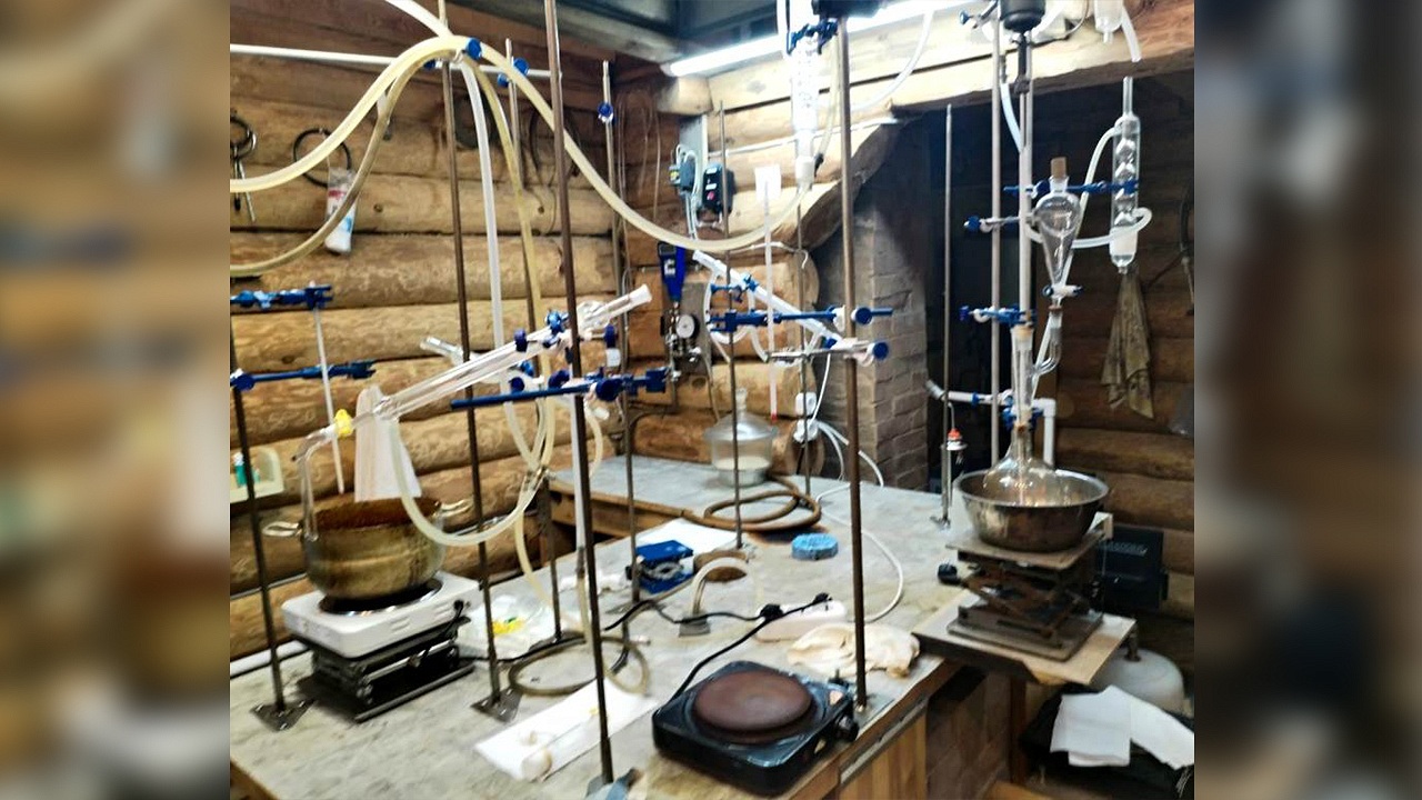 По версии полиции, незаконное изготовление мефедрона организовал на приусадебном участке, принадлежащем супруге, 64-летний житель Северной столицы, ранее судимый за совершение наркопреступления.