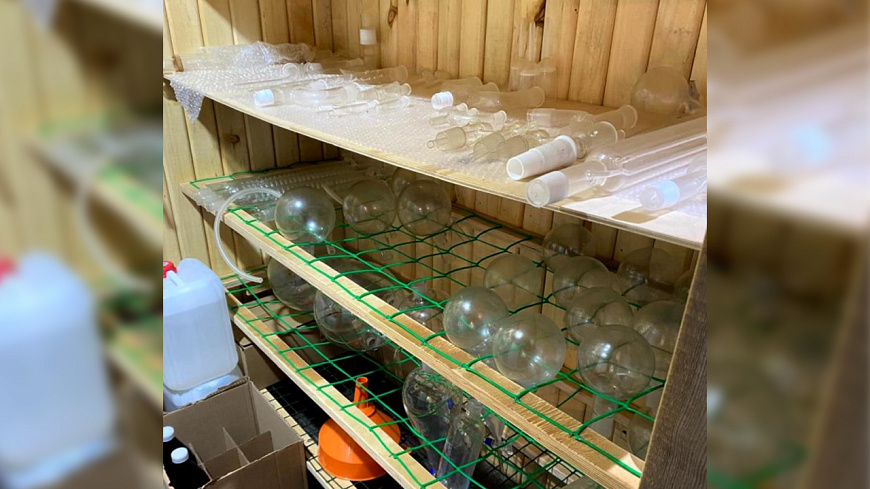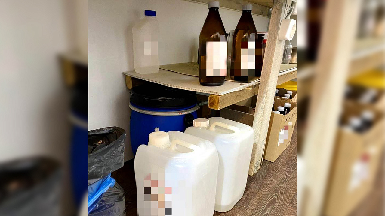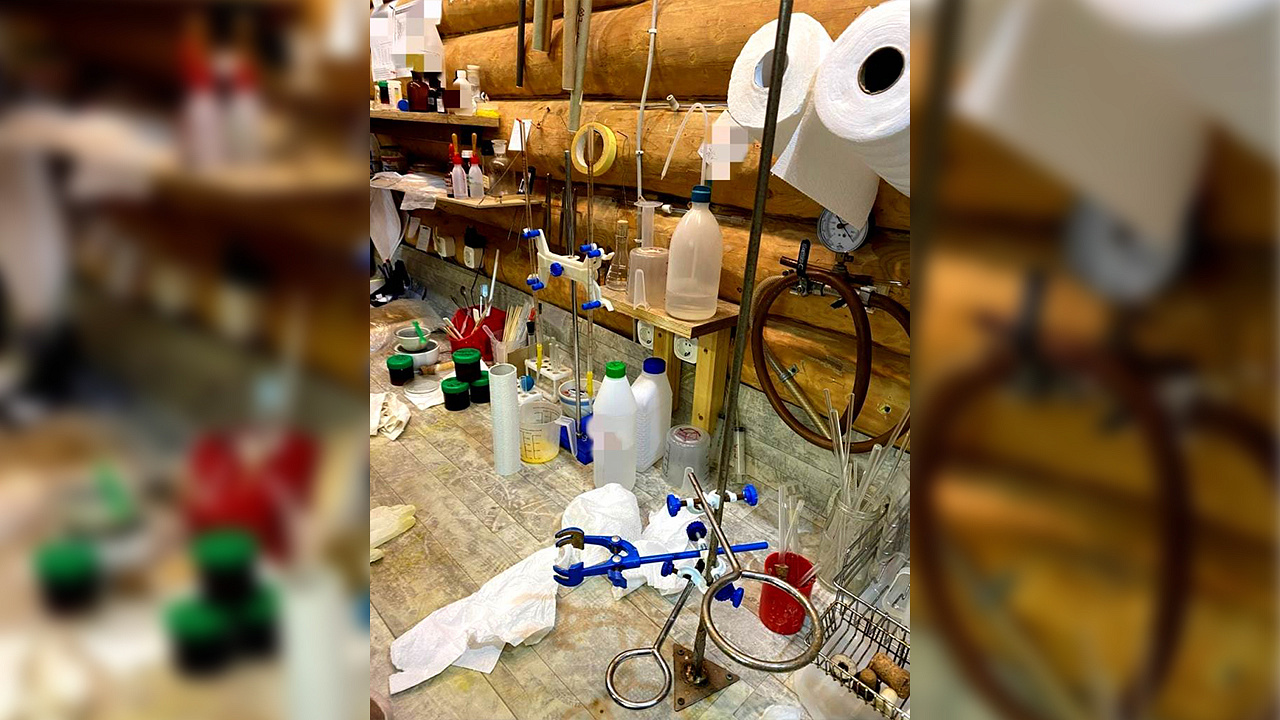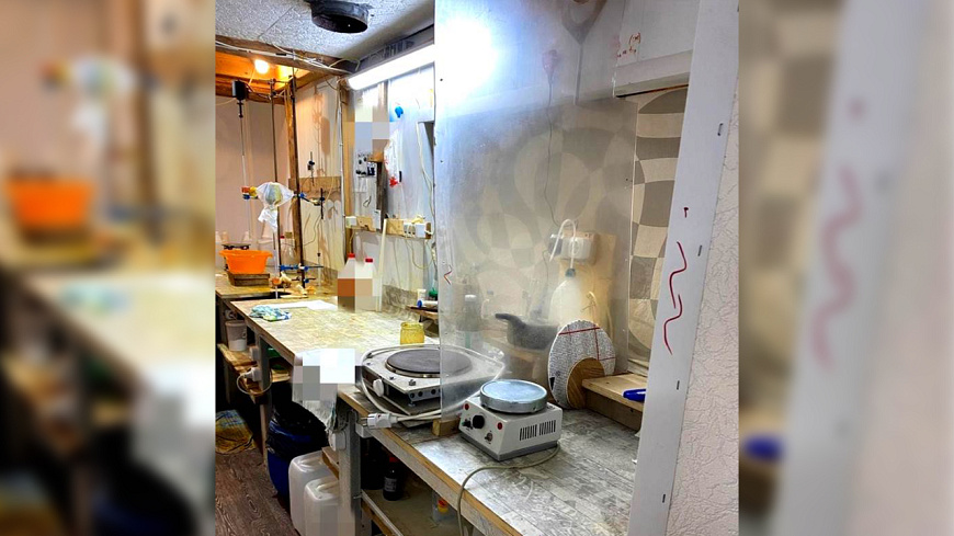 Подозреваемый был задержан полицейскими на месте преступления. В ходе обследования помещений, проведённого в рамках оперативно-розыскных мероприятий, обнаружено и изъято специализированное оборудование, посуда, более 200 канистр и бутылей общим объёмом около 300 литров с различными компонентами и прекурсорами, контейнеры, содержащие кристаллическое вещество и маслянистую жидкость, а также устройства для перемешивания, нагревания и охлаждения.