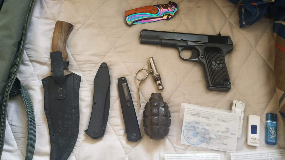 При проведении обысков по местам жительства подозреваемых полицейские обнаружили и изъяли у них два охотничьих ружья и травматический пистолет, учебную гранату, холодное оружие, а также другие предметы, представляющие оперативный интерес.