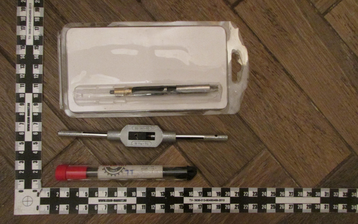 При осмотре квартиры, в которой проживает злоумышленник, полицейские обнаружили и изъяли снаряжённые самодельным способом 680 патронов калибра 9х18 мм, короткоствольное нарезное огнестрельное оружие калибра 9 мм, переделанное из спортивного пистолета, а также металлические тиски, развёртки и электронные весы.