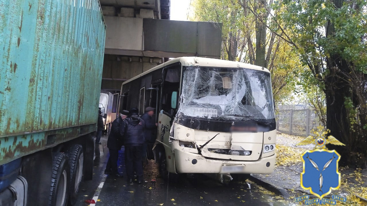 Саратовская полиция устанавливает обстоятельства ДТП с участием двух КамАЗов, легковушки и автобуса