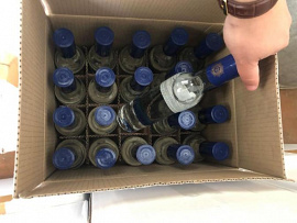 На территории кооператива, расположенного в Ленинском районе областного центра, полицейские обнаружили и изъяли из машины и гаражного бокса подозреваемого около 120 пятилитровых канистр, а также свыше 1600 немаркированных бутылок разного объёма, оклеенных этикетками разных производителей водки. Исследование, проведённое сотрудниками экспертно-криминалистического центра УМВД России по Смоленской области, показало, что в ёмкостях находилась алкогольная продукция с содержанием этилового спирта от 32 % до 35 %.