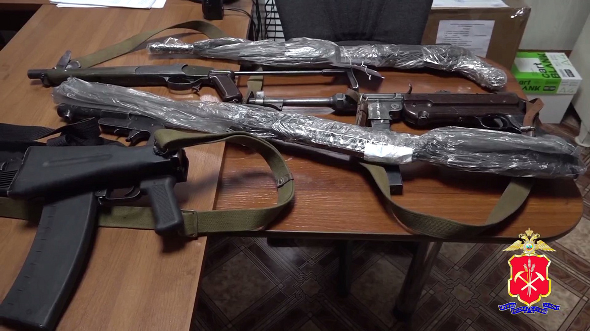 В ходе обыска в двух гаражах подозреваемого обнаружено и изъято 3 гладкоствольных ружья, винтовка со сбитым номером, «Сайга», автомат, 2 пистолета Макарова с боеприпасами к ним, 2 обреза охотничьих ружей, переделанный сигнальный пистолет, а также большое количество основных частей оружия: стволы с ударно-спусковым механизмом, устройство для изготовления пуль, прицельное приспособление, шомпол, металлический приклад, заготовки ствола, рукоятка автомата Калашникова. Кроме этого, найдено свыше 5 800 патронов различного калибра, 4 банки с порохом и электродетонаторы.