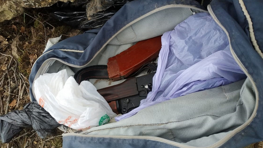 В Республики Дагестан правоохранителями при проведении оперативных мероприятий на склоне горы Пушкин-Тау, расположенной в Каякентском районе региона, под завалом камней в спортивной сумке обнаружен схрон оружия и боеприпасов.