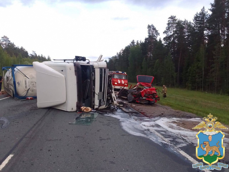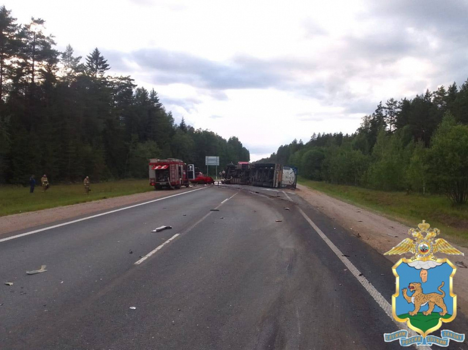Сотрудники Госавтоинспекции Псковской области устанавливают обстоятельсва смертельного ДТП с большегрузом