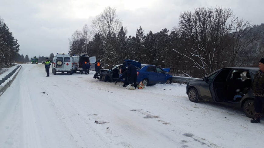 В результате ДТП оба водителя, а также пятеро пассажиров столкнувшихся автомашин, включая 9-летнюю девочку, госпитализированы.