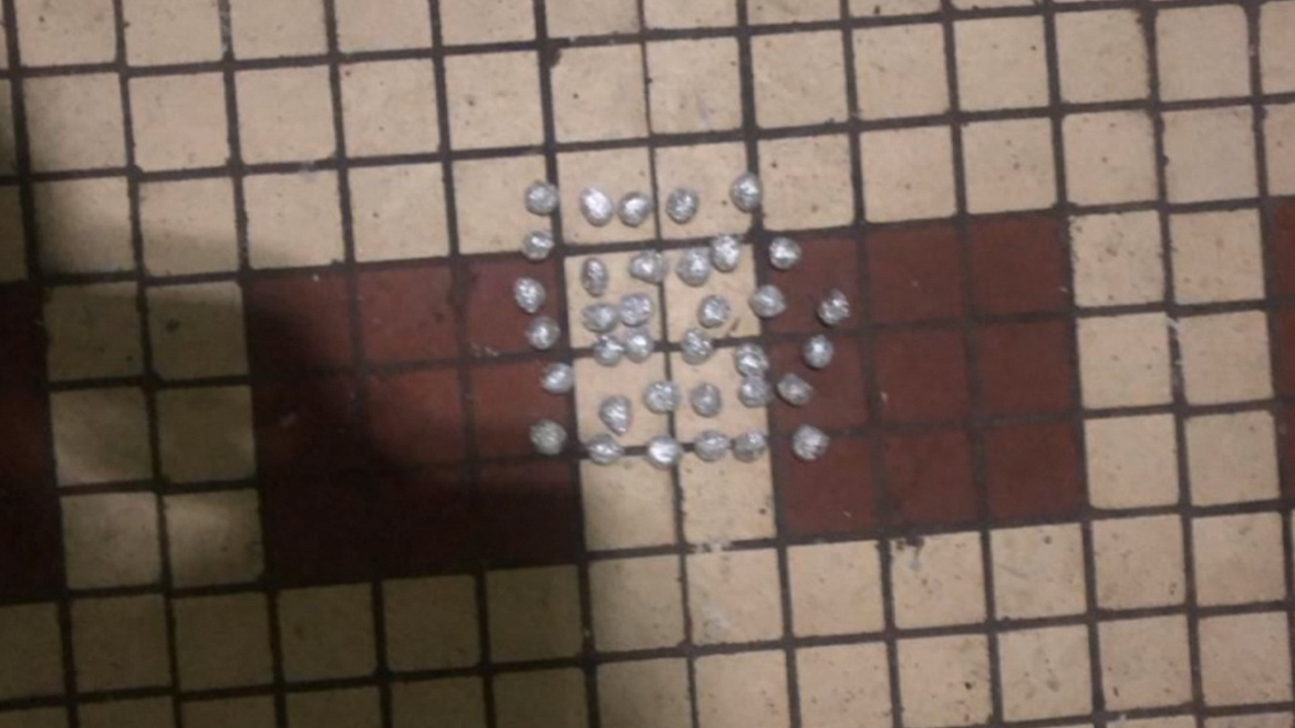 В подъезде жилого дома при осмотре места происшествия обнаружены два свёртка из полимерного материала с неизвестным веществом общей массой свыше 3 граммов. Во время личного досмотра подозреваемого изъято тридцать пять свёртков общей массой 66,5 грамма. Согласно результатам исследования найденное содержит в своём составе наркотическое средство героин.