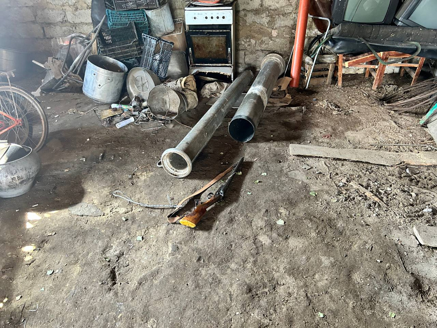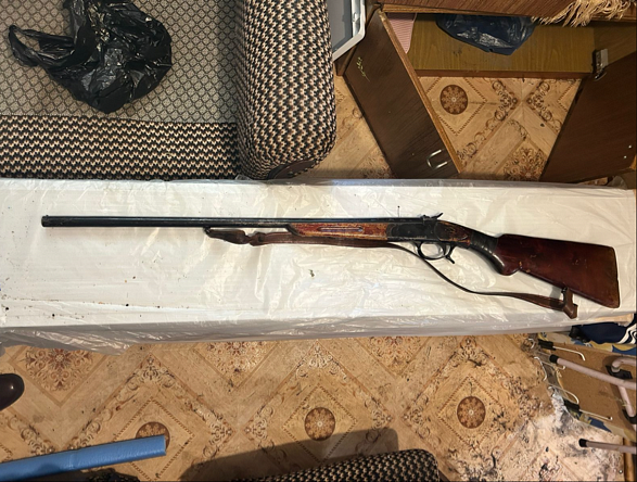 Мужчина был задержан. Полицейские изъяли у него опасный предмет. Кроме того, в ходе осмотра жилища подозреваемого стражи правопорядка обнаружили ещё одно незаконно хранящееся гладкоствольное одноствольное ружьё и пять охотничьих патронов, а в гараже обрез, который был спрятан в куске лежавшей на полу металлической трубы.
