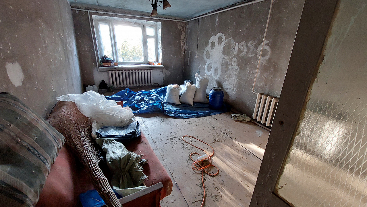 Недалеко от места жительства подозреваемого в заброшенном доме, используемом им как склад, сыщики обнаружили и изъяли 12 мешков и пластиковый бидон, наполненные частями конопли общей массой свыше 64 килограммов.