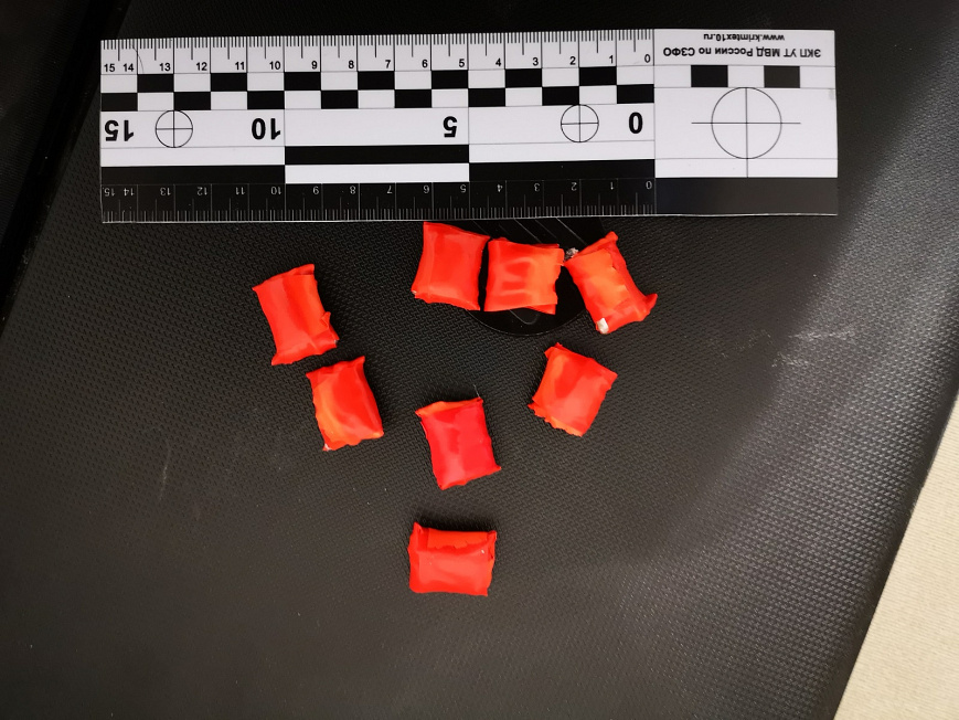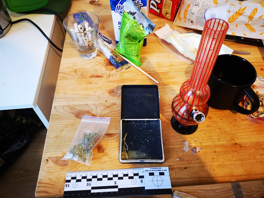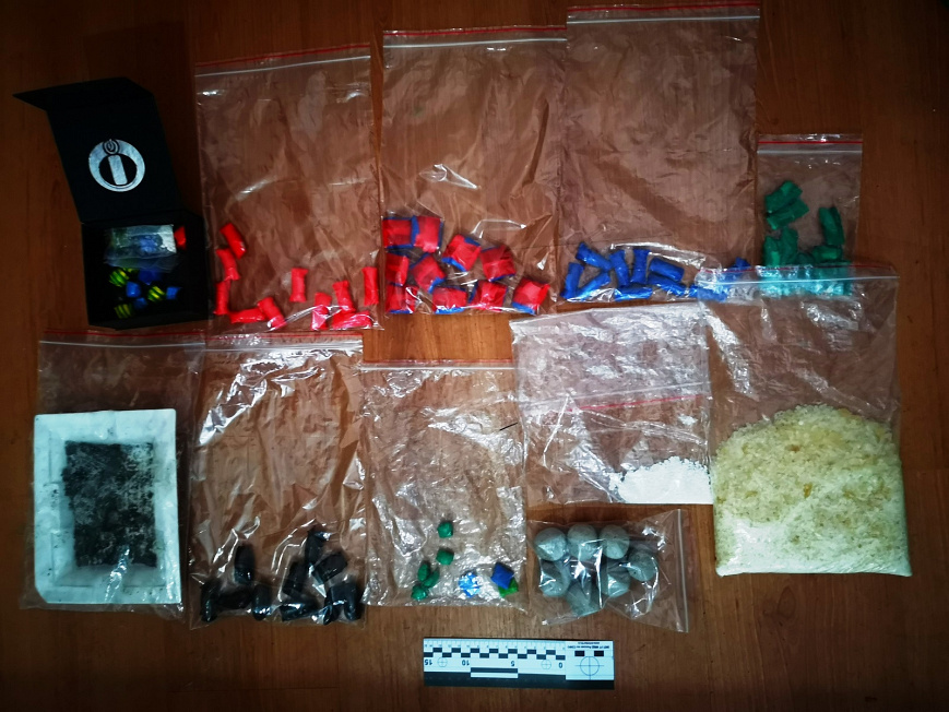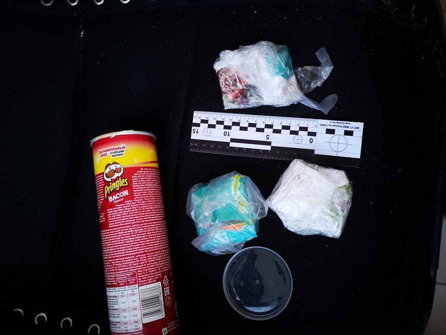 Впоследствии при обыске в двух арендованных мужчиной квартирах в платяных шкафах обнаружены картонные коробки, в которых были спрятаны 37 свёртков с различными веществами, общей массой 2,5 кг. Согласно заключению ЭКЦ УТ МВД России по СЗФО все изъятые вещества являются наркотическими средствами семи видов: мефедрон, амфетамин, метилэфедрон, метамфетамин, МDMB, MMBA, марихуана.