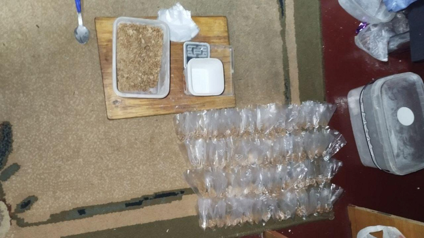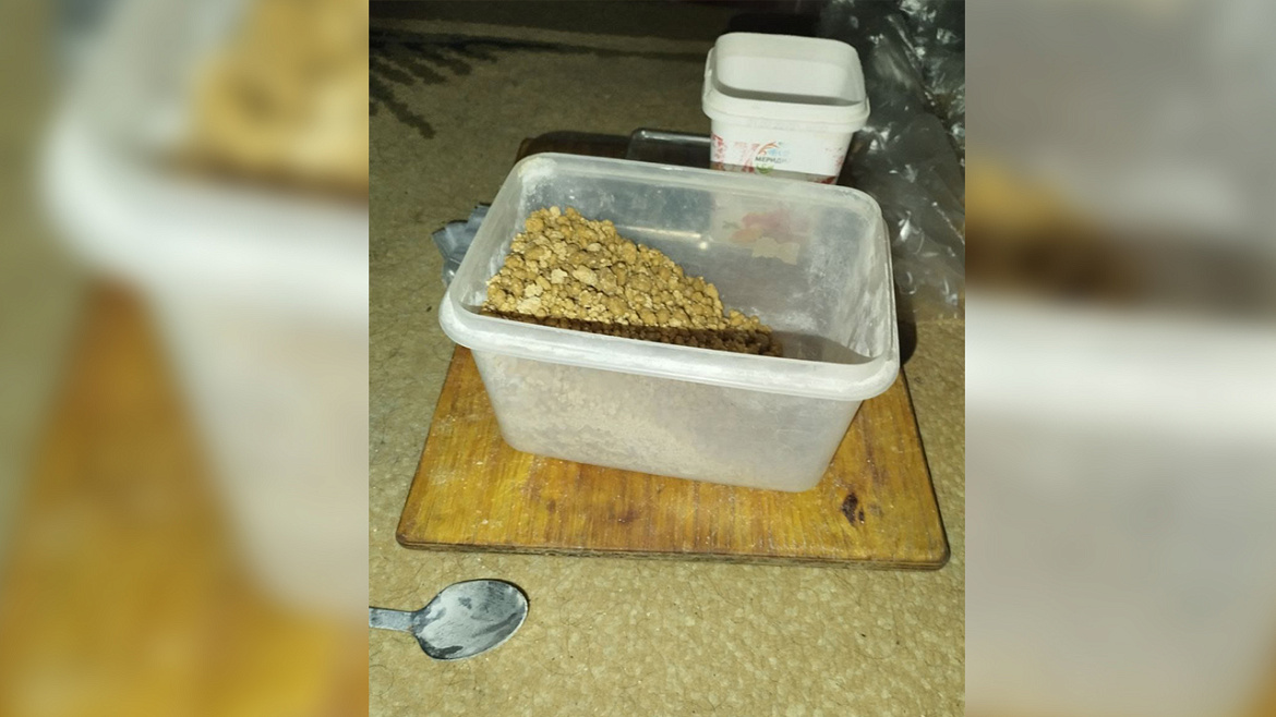 В тот же день в ходе дальнейшей работы полицейские провели обыск в арендованной подозреваемым квартире, где обнаружили на полу, на столе, под кроватью и на стеллаже россыпью, а также в контейнере аналогичное наркотическое средство. Все вещества были изъяты и направлены на исследование, по результатам которого установлено, что они также являются наркотическим средством – героином общей массой около 1 килограмма.