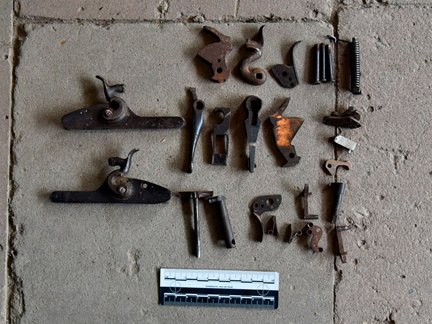 При проведении обыска по месту жительства 67-летнего местного жителя полицейские обнаружили и изъяли два карабина, около 50 составных частей к различным видам оружия и более 100 патронов разных калибров.
