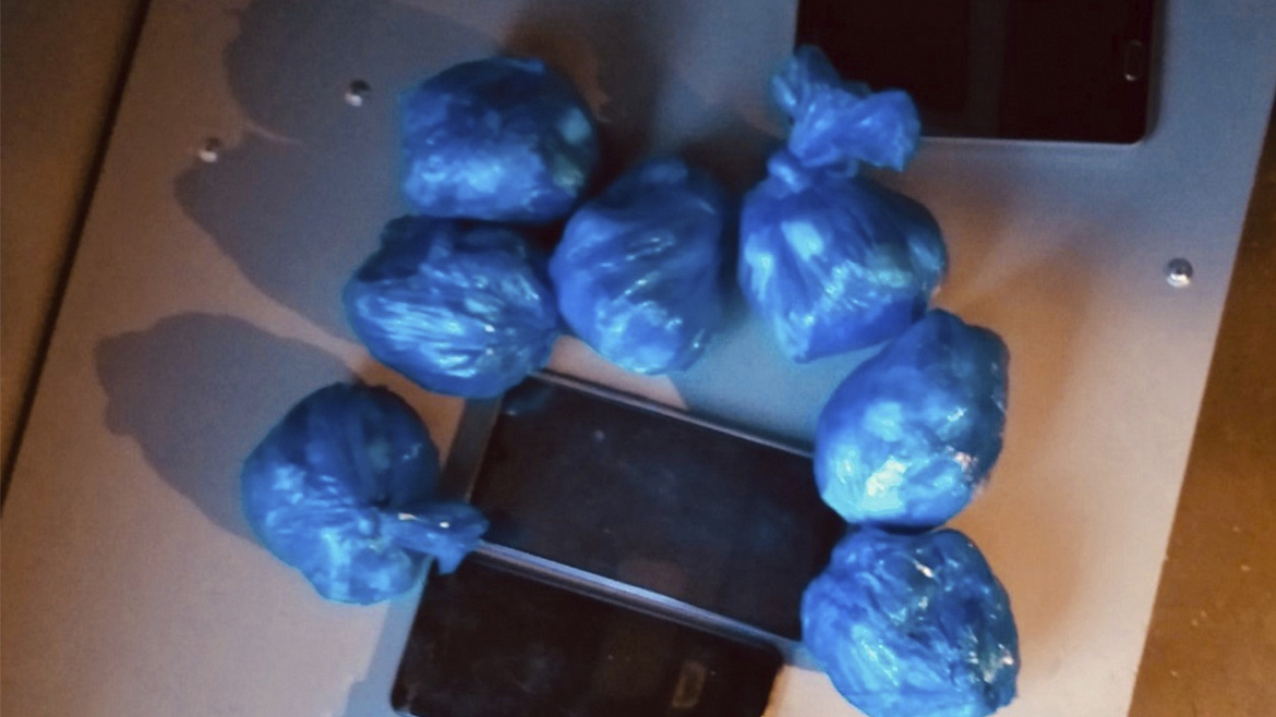 При личном досмотре полицейские обнаружили в карманах его одежды свёрток с неизвестным веществом. Ещё 8 свёртков находились в его портфеле. По результатам проведённого исследования установлено, что изъятое у гражданина является наркотическим веществом героином массой около 1 килограмма.