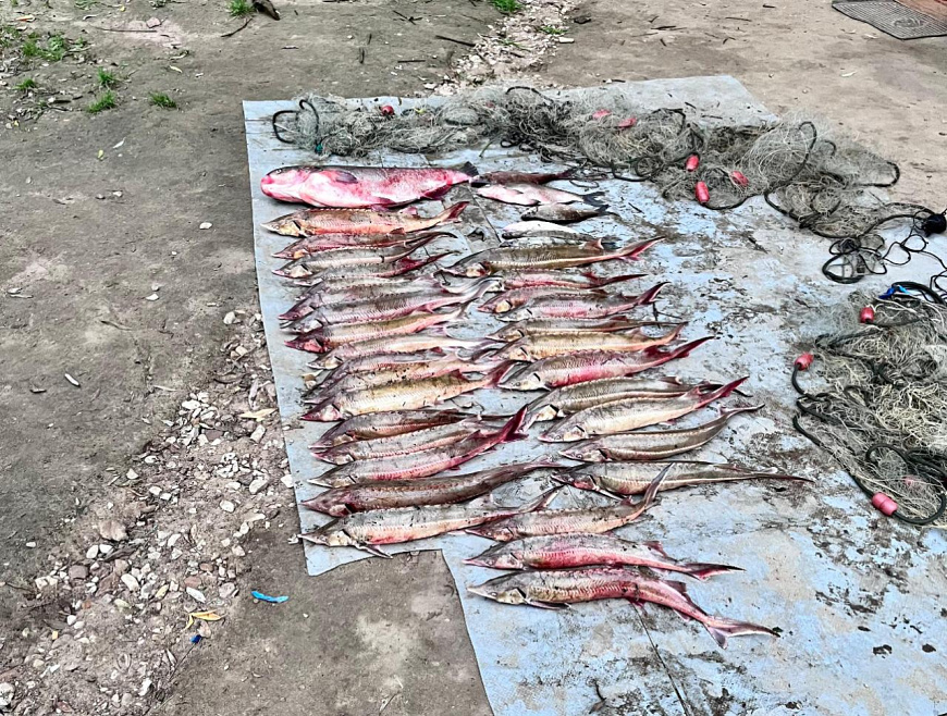 Полицейские выяснили, что местные жители, используя две моторные лодки, установили рыболовные сети на водоёме. К моменту появления правоохранителей злоумышленники успели выловить 38 особей рыбы различного вида, в том числе 31 стерлядь, которая является ценным промысловым видом.