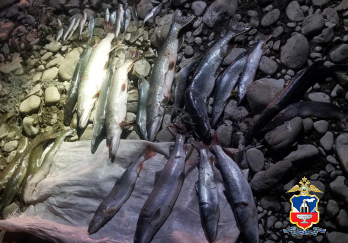 Было установлено, что правонарушители незаконно добыли 4 особи тайменя – рыбы, которая занесена в Красную книгу России, а также 12 щук, 4 налима и 13 хариусов. Стражи правопорядка изъяли улов, лодку с вёслами, остроги и рыболовные костюмы.