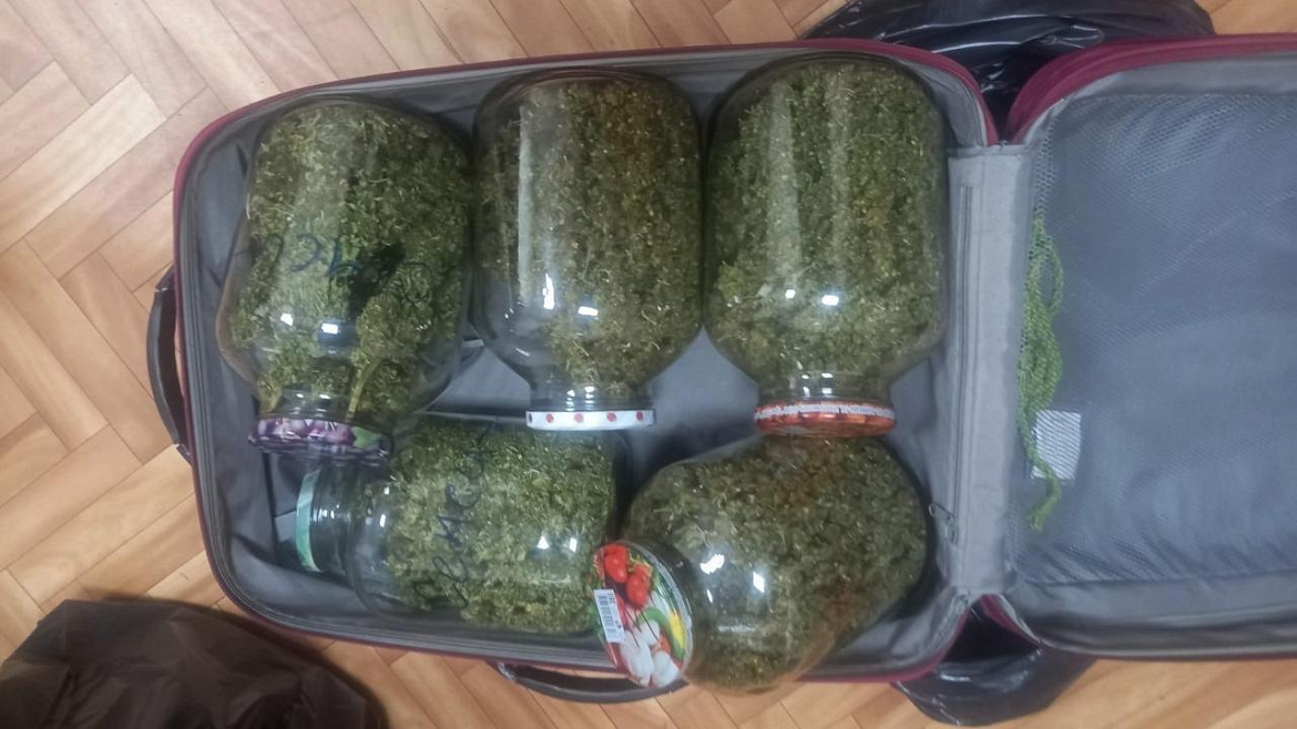 По месту жительства мужчины полицейские обнаружили и изъяли пластиковые контейнеры и стеклянные банки объёмами от 0,5 до 5 литров, в которых хранилось свыше 8,4 килограмма наркотических продуктов, приготовленных им из конопли. Согласно проведённой экспертизе, ими оказались марихуана и гашиш. Примечательно, что хозяин дома прятал банки с наркотиками в чемоданах.
