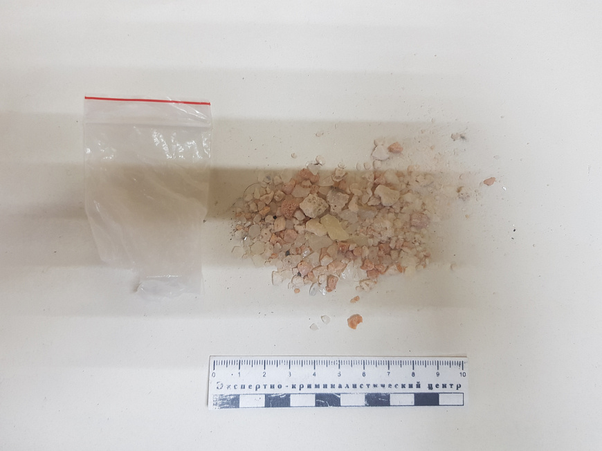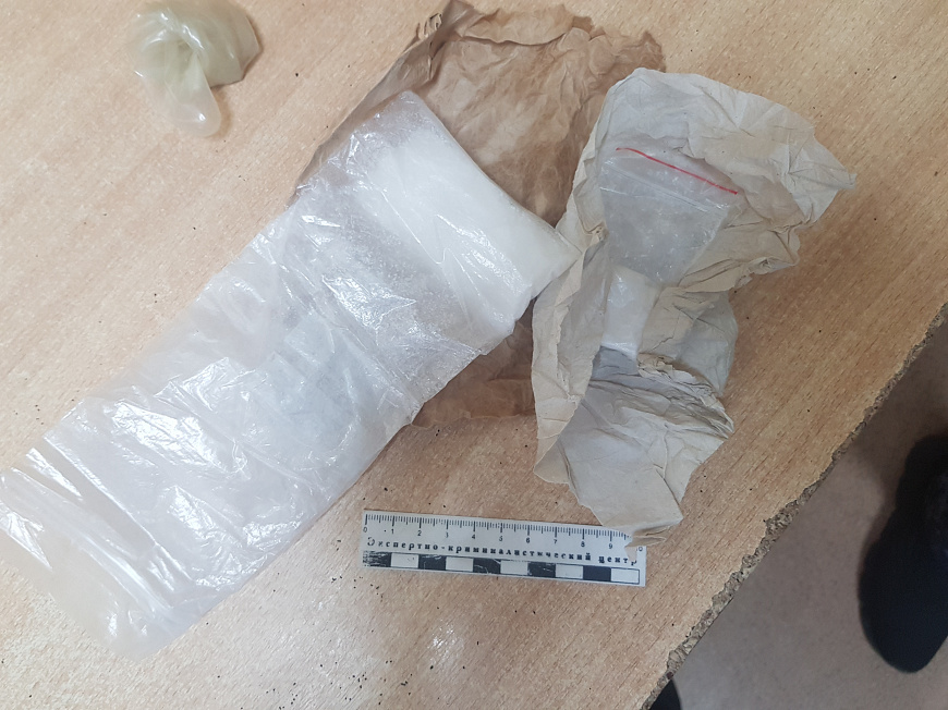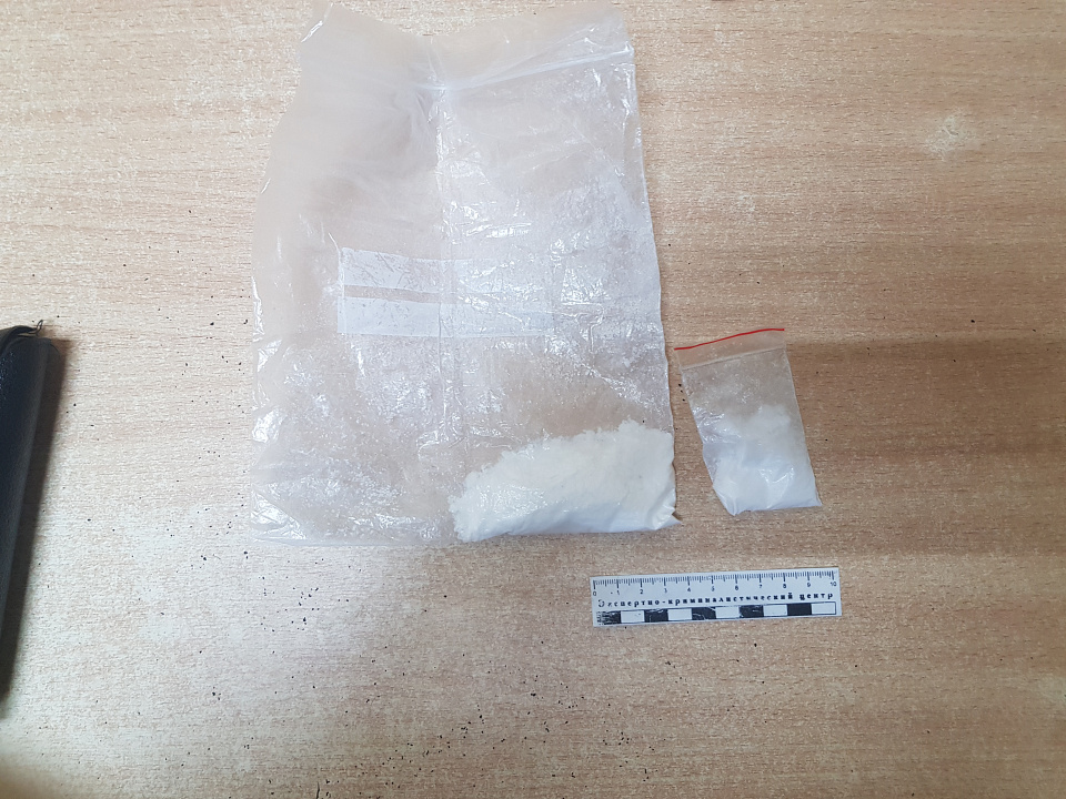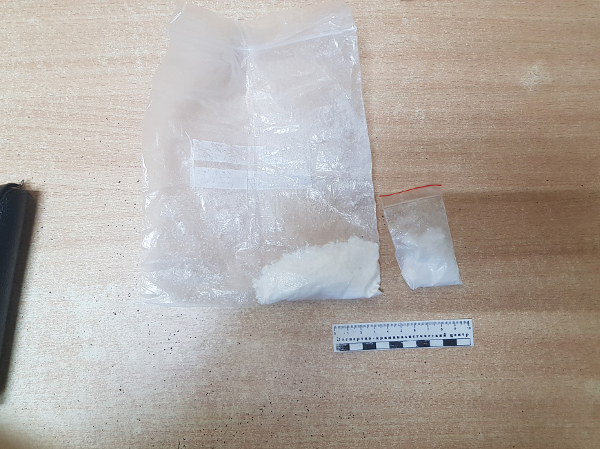 В ходе осмотра транспортного средства с применением служебно-розыскной собаки в салоне и багажном отсеке автомобиля полицейские обнаружили стеклянный флакон с неизвестным веществом, курительную трубку со следами нагара, а также кристаллообразные гранулы. В ходе личного досмотра у пассажира в нательном белье было обнаружено два полимерных свёртка с порошком светлого цвета.