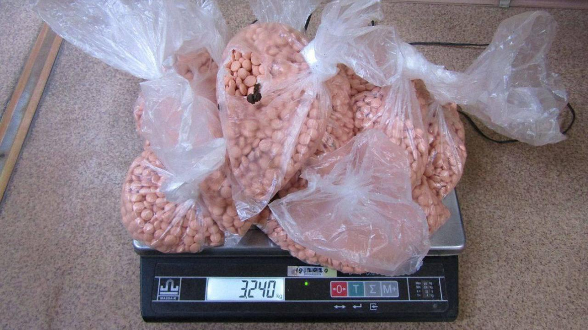 Полицейские в ходе осмотра багажа с использованием досмотрового модуля в одном из чемоданов обнаружили 2 упаковки, внутри которых были спрятаны 10 пакетов с таблетками. Исследованием установлено, что изъятое содержит сильнодействующее вещество – трамадол общей массой более 3,2 килограмма.