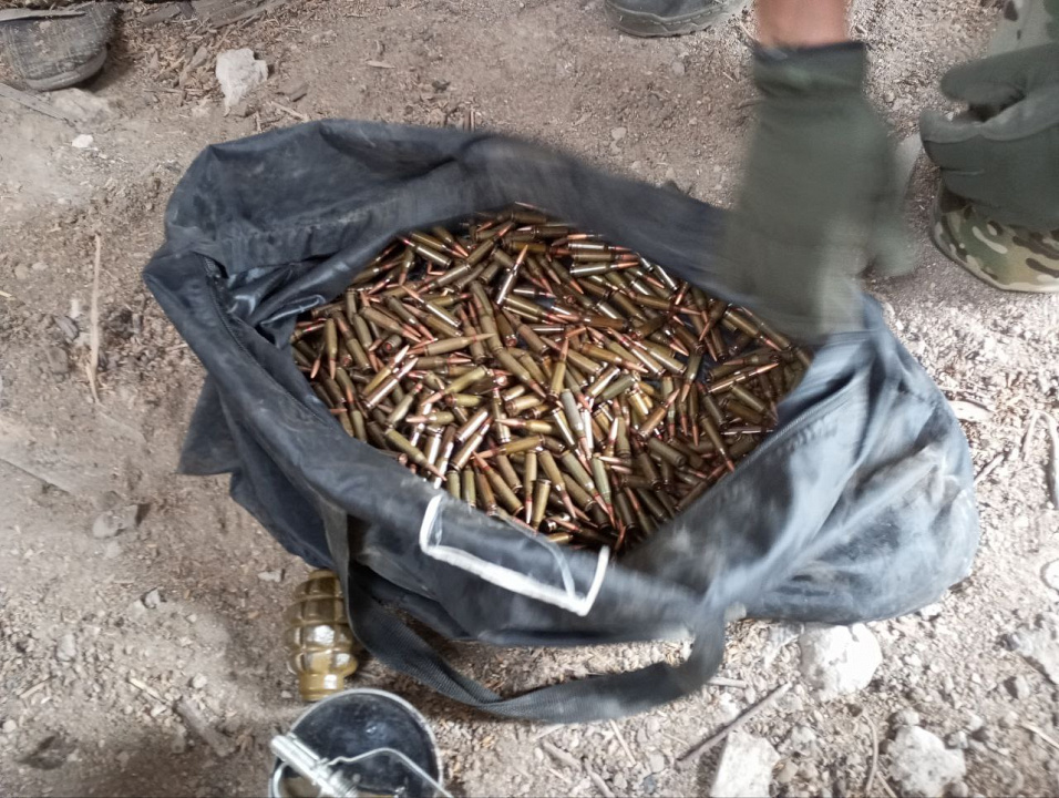 Сотрудники полиции получили информацию о возможном нахождении схрона с боеприпасами на территории Голопристанского района Херсонской области. При проведении оперативно-розыскных мероприятий полицейские во взаимодействии с коллегами из УФСБ обнаружили в заброшенном доме под залежами каменных блоков сумку с гранатой Ф-1, запалом УЗРГМ, дымовой шашкой и 590 патронами калибра 5,45 мм.
