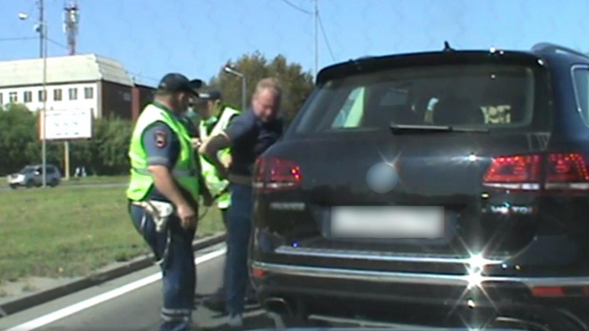 На въезде в город Усолье-Сибирское лихач допустил ряд агрессивных манёвров, в числе которых обгон автобуса по обочине. Вскоре машина нарушителя была блокирована, а он задержан полицейскими.