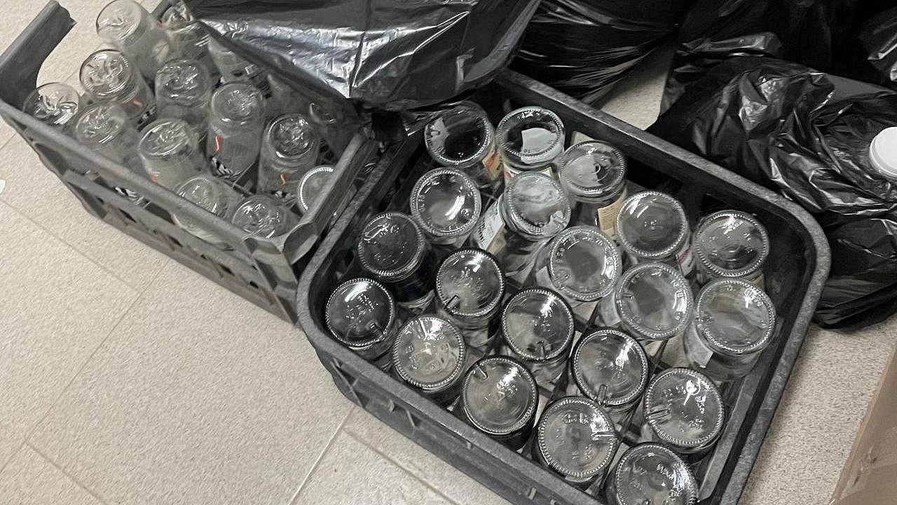 Сотрудниками Управления экономической безопасности и противодействия коррупции МВД по Кабардино-Балкарской Республике у обвиняемых обнаружено 1145 бутылок объёмом по 0,5 л со спиртосодержащей жидкостью без специальной маркировки, а также пластиковые ёмкости, водяные фильтры, шланги, укупорочные станки и пустая стеклянная тара.