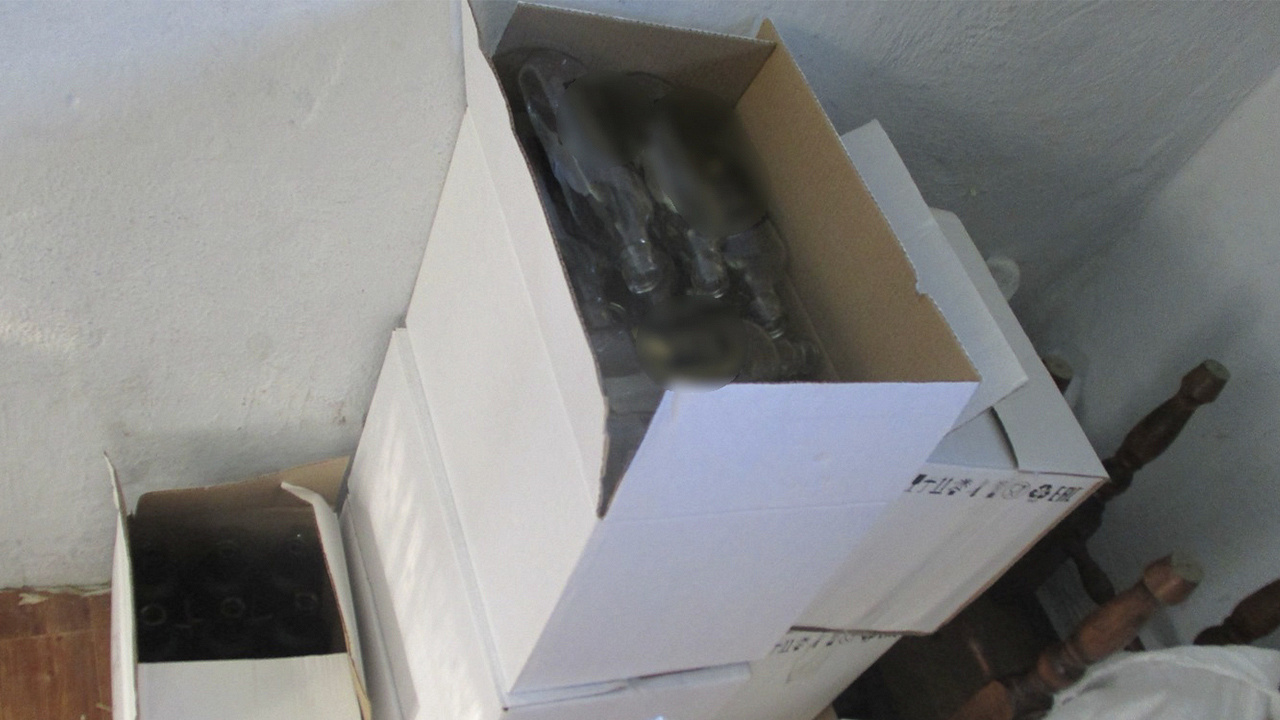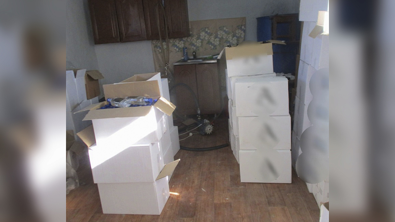 В рамках санкционированного обследования жилища организатора подпольного цеха оперативники изъяли 888 бутылок водки (505,5 л.) с этикетками различных производителей без федеральных специальных марок, 111 пятилитровых пластиковых ёмкостей со спиртосодержащей жидкостью, а также пустые бутылки, крышки и этикетки для кустарного производства алкоголя. Согласно данным экспертизы, стоимость изъятой продукции составила более 228 тысяч рублей.