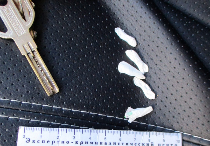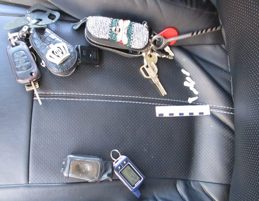 При осмотре транспортного средства подозреваемой стражами правопорядка обнаружено и изъято вещество белого цвета. В брелоке от автомобильных ключей находилось пять свёртков с запрещённым препаратом. Ещё один обнаружен в пепельнице автомобиля.