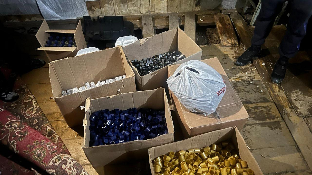 Как выяснили полицейские, злоумышленники на территории дачи одного из них организовали мини-цех по производству крепких горячительных напитков. При этом над технологией особо не мудрствовали: смешивали спирт с водой и разливали самодельную водку по бутылкам с этикетками популярных брендов.