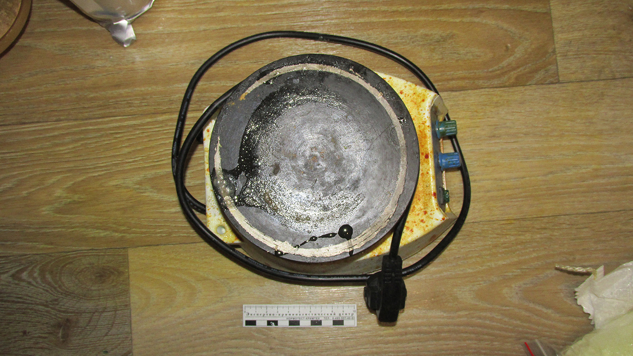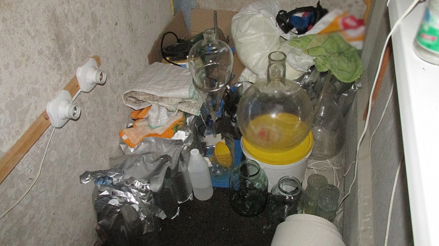Во время оперативно-розыскных мероприятий и обысков, проведённых в мае прошлого года, правоохранители обнаружили оборудованную нарколабораторию. В ней были найдены реактивы и прекурсоры наркотических веществ, средства индивидуальной защиты, а также жидкость с осадком, внешне схожим с наркотическим веществом, которая находилась в двух стеклянных банках в морозильной камере холодильника. Согласно заключению эксперта, изъятое содержало в своем составе мефедрон массой сухого остатка порядка 540 граммов.