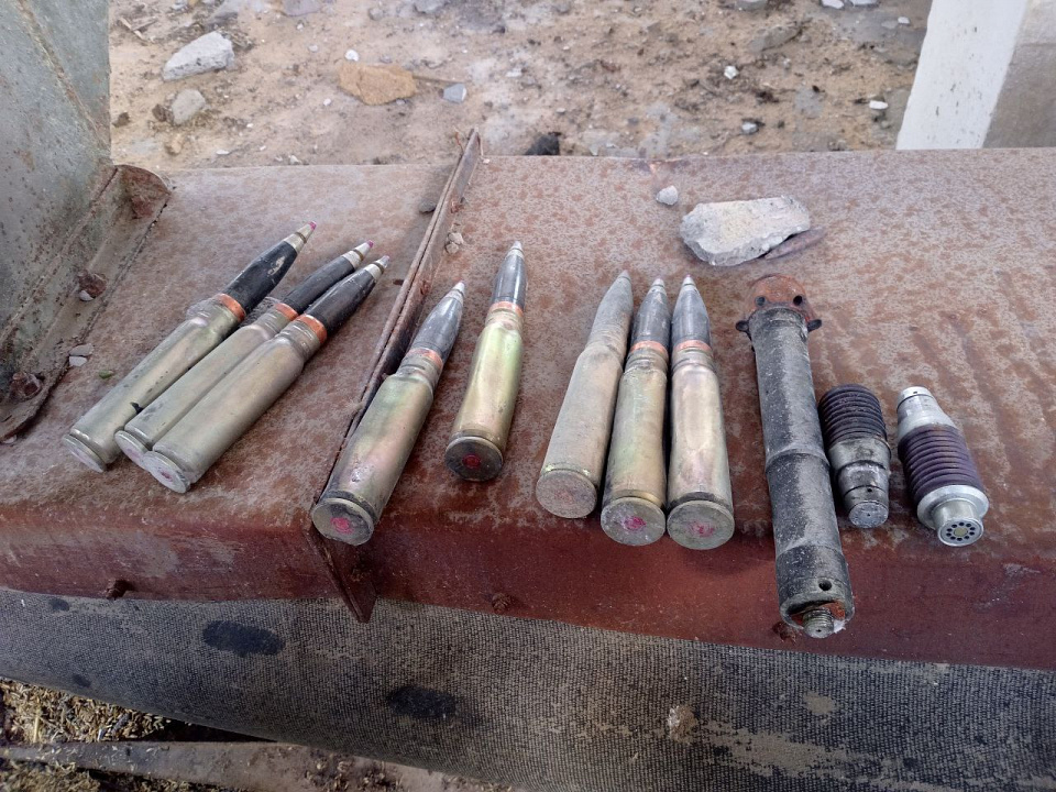 Для обследования местности площадью около трёх квадратных километров были привлечены кинологи с тремя служебно-розыскными собаками, а хранилище поделено на сектора. В результате полицейские обнаружили 2 осколочных гранатометных выстрела, 2 выстрела от РПГ, 34 взрывателя АР-5, 110 патронов калибра 7,62 и 14,4 миллиметра, а также около 3 кг тротила и 20 кг артиллерийского пороха.