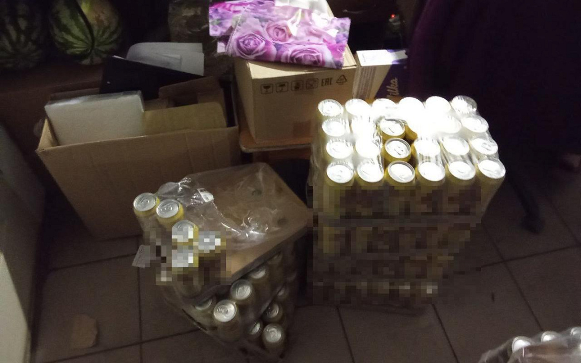 В дальнейшем при осмотре подсобного помещения торговой точки полицейские обнаружили алкоголь, общий объём которого составил более 820 литров.