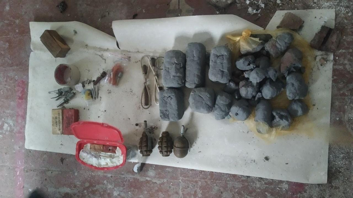 Из тайника правоохранители изъяли 2 гранаты Ф-1, гранату РГД-5 и 4 запала к ним, 3 тротиловые шашки, 3 кг пластида, 4 электродетонатора, 2 зажигательные трубки, 3 капсюль-детонатора для взрывных работ, а также компоненты для возможного изготовления самодельного взрывного устройства.