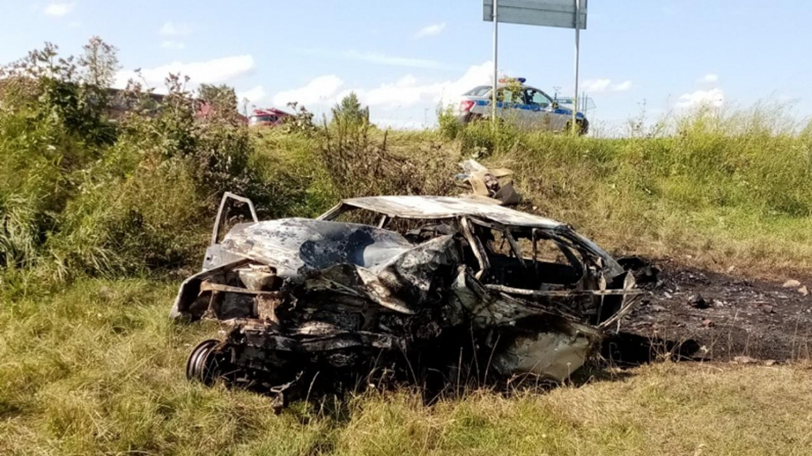 По предварительным данным, сегодня днём на 90 км автодороги Ачинск - Ужур - Троицкое водитель отечественного автомобиля при обгоне, выехал на полосу встречного движения и допустил столкновение с другой машиной, после чего съехал кювет, с последующим возгоранием.