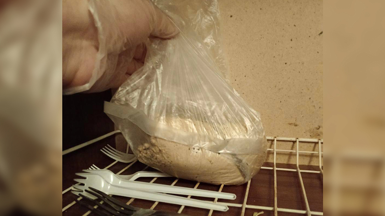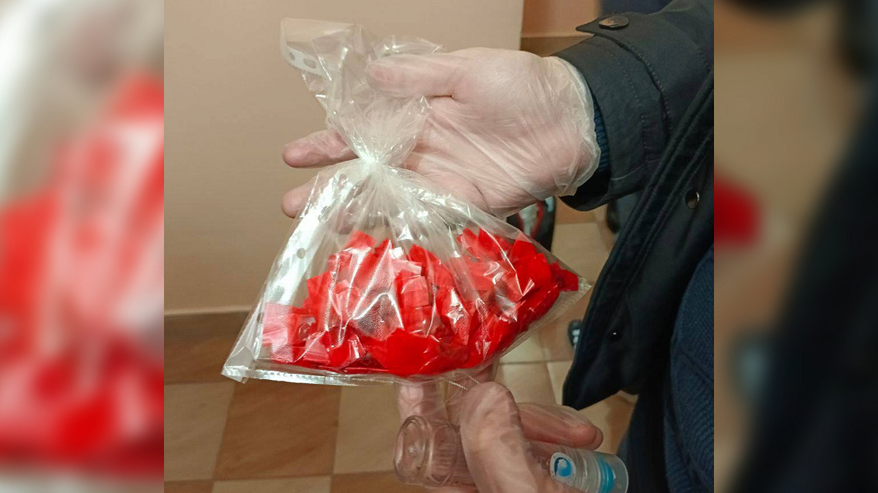 При задержании у закладчика было обнаружено 53 свёртка с неизвестным веществом. Кроме того, из его жилища изъяты ещё 224 аналогичные упаковки, завёрнутые в клейкую ленту красного цвета, а также большой свёрток. Проведённая экспертиза установила, что изъятое содержит героин общей массой более 378 г.