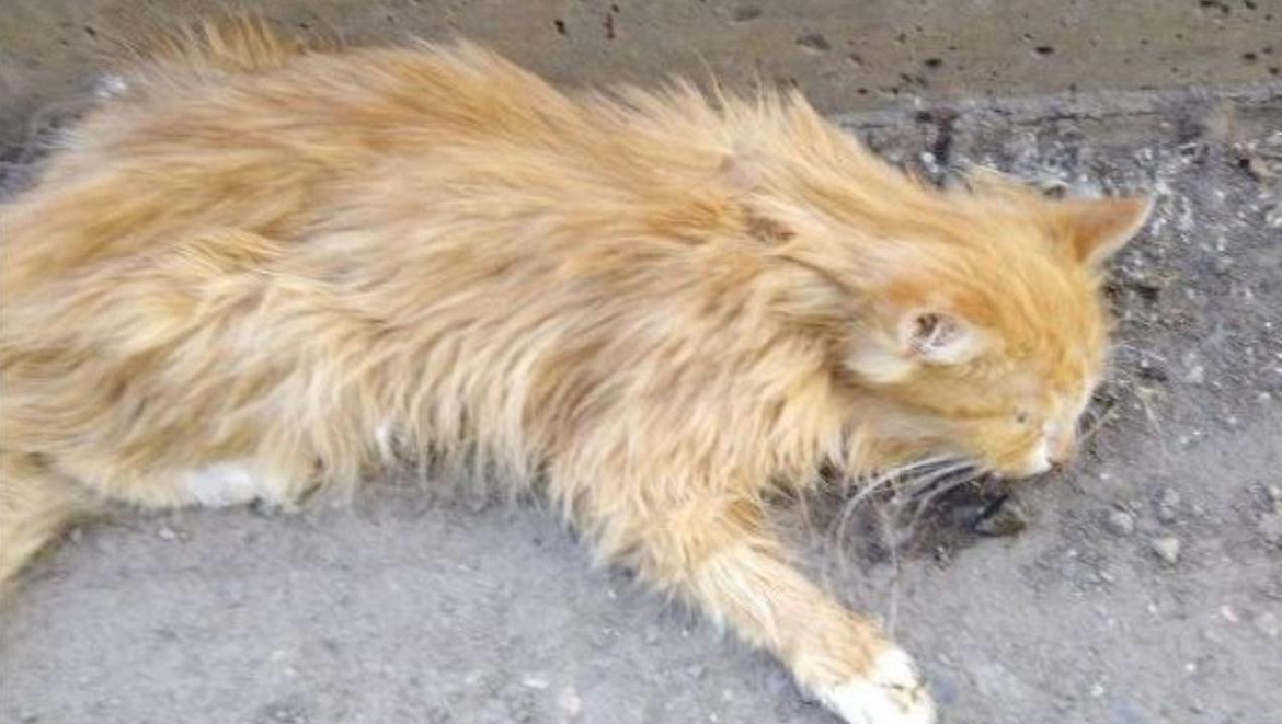 Из всех сброшенных кошек выжила только одна. Её спасла ветеринар, которая и забрала рыжего пушистого зверька себе домой.
