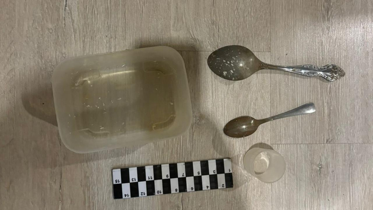 Во время обследования жилища злоумышленника полицейские обнаружили и изъяли спрятанные в ящике кресла-кровати тарелку и пакет с белым порошком. Экспертиза установила, что найденным веществом является N-метилэфедрон общей массой свыше 850 граммов.