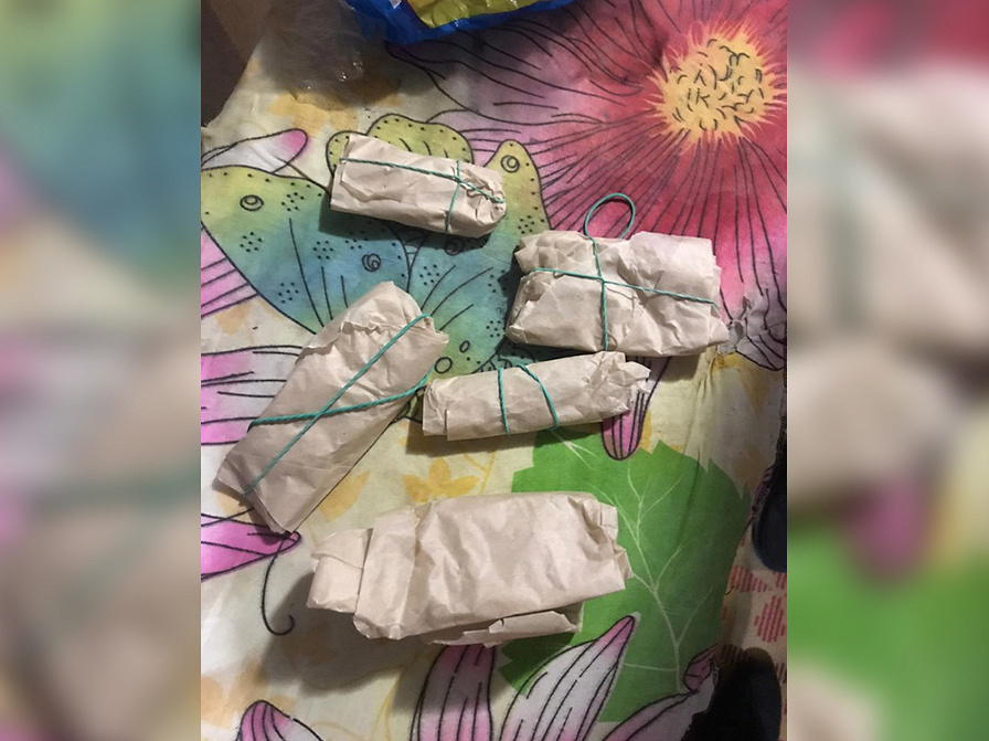 В дальнейшем в ходе обыска у него дома были обнаружены и изъяты наркотические средства растительного происхождения, сильнодействующие и психоактивные вещества, а также упаковочные материалы. Часть из веществ была спрятана внутри пластилиновых шариков и гипсовых слепков, замаскированных под камни. Таким образом злоумышленник планировал сделать будущие закладки незаметными для прохожих.