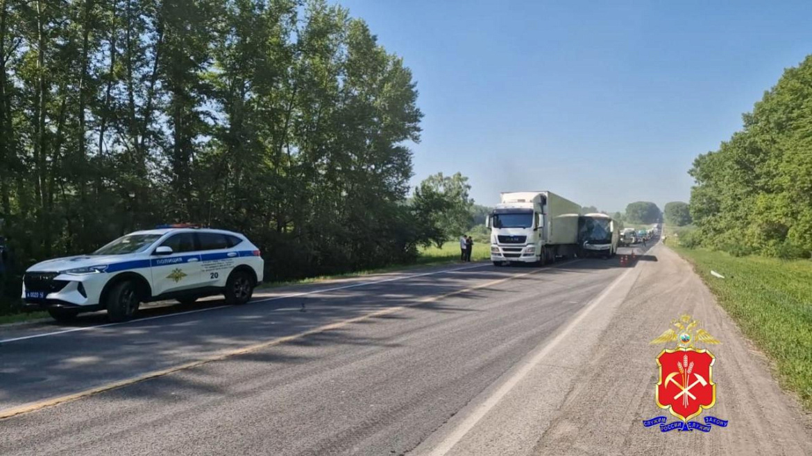 Сегодня утром в Кемеровской области на 235 километре автодороги Р-255 «Сибирь» на территории Топкинского муниципального округа произошло дорожно-транспортное происшествие с участием грузового автомобиля и междугороднего автобуса.