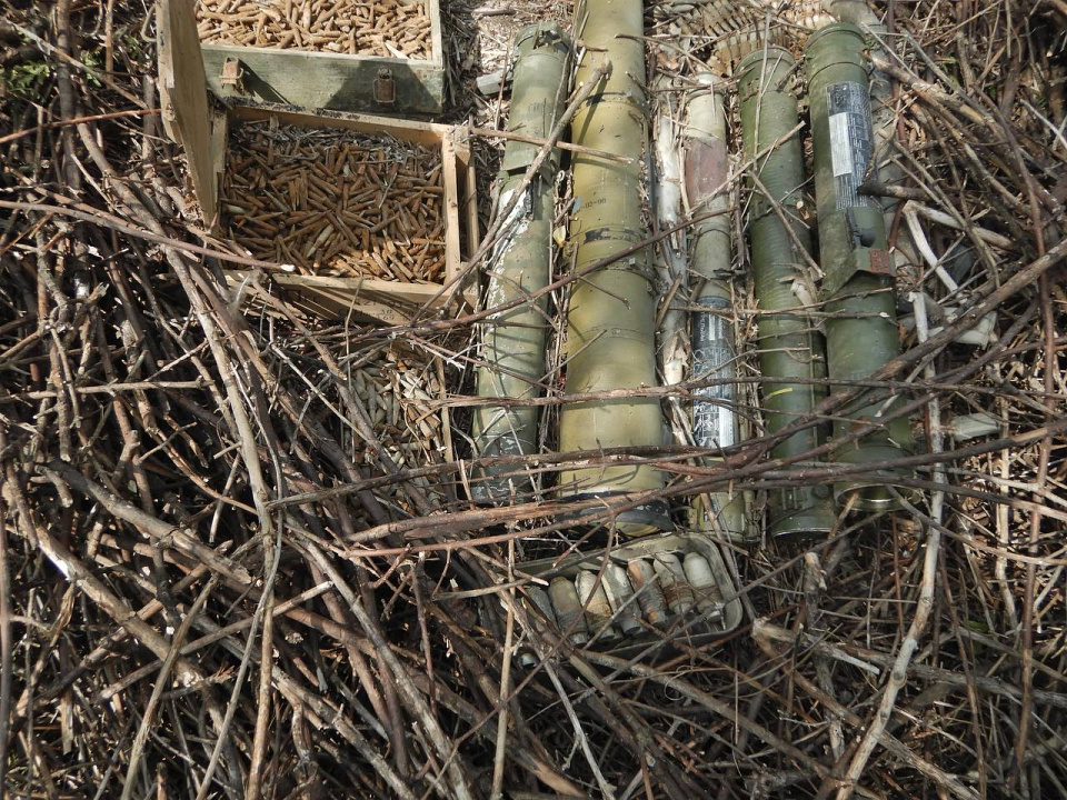 Из найденного схрона правоохранители изъяли огнемёт, гранаты, снаряды и патроны различного калибра.