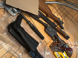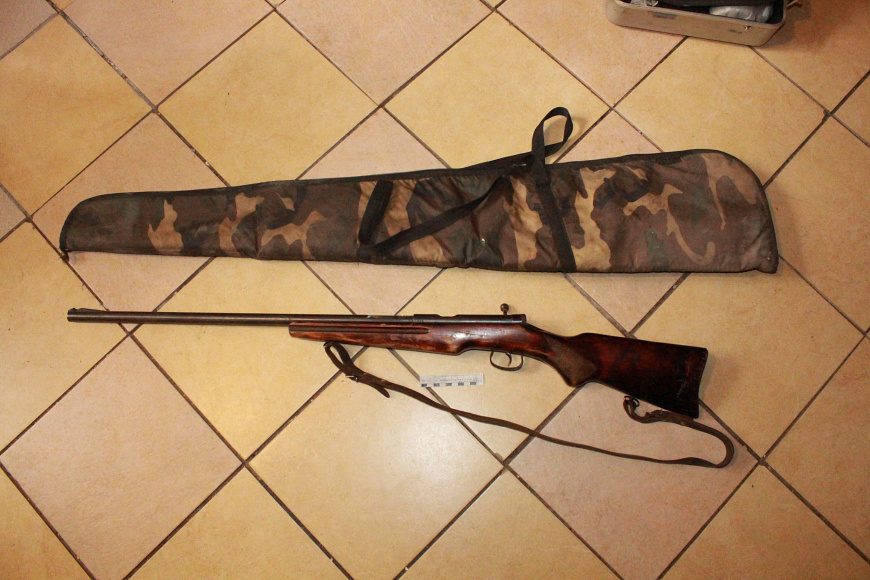 В результате обыска в доме подозреваемого правоохранители обнаружили винтовку калибра 5,6 мм и около 400 патронов различного калибра. Со слов мужчины, всё это он нашёл в 2010 году в лесу и оставил себе. Помимо этого, в доме был изъят карабин калибра 7,62 мм, переделанный подозреваемым из купленного около года назад в магазине охолощенного ружья.