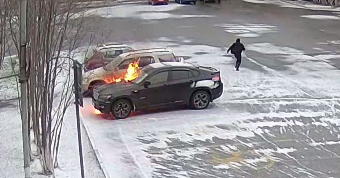 В результате возгорания автомобиля потерпевшему причинён ущерб в размере около 1,5 миллиона рублей. Сотрудники полиции просмотрели записи с камер видеонаблюдения, нашли очевидцев происшествия и установили личность поджигателя. Мужчина был задержан, ему предъявлено обвинение в поджоге.