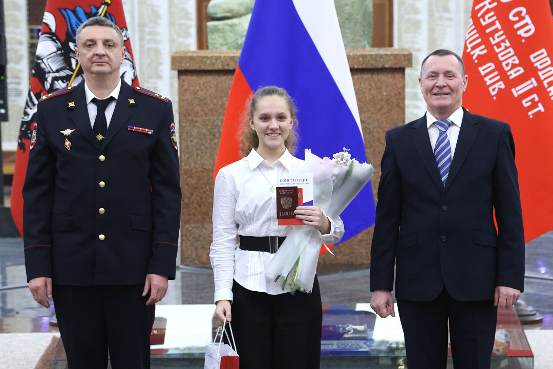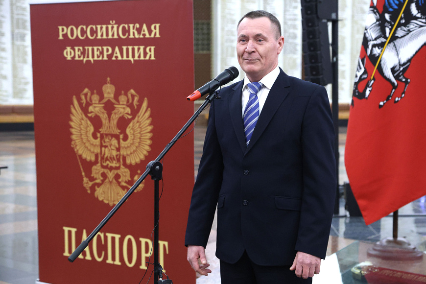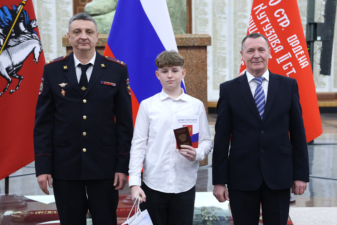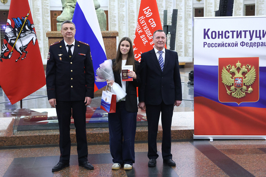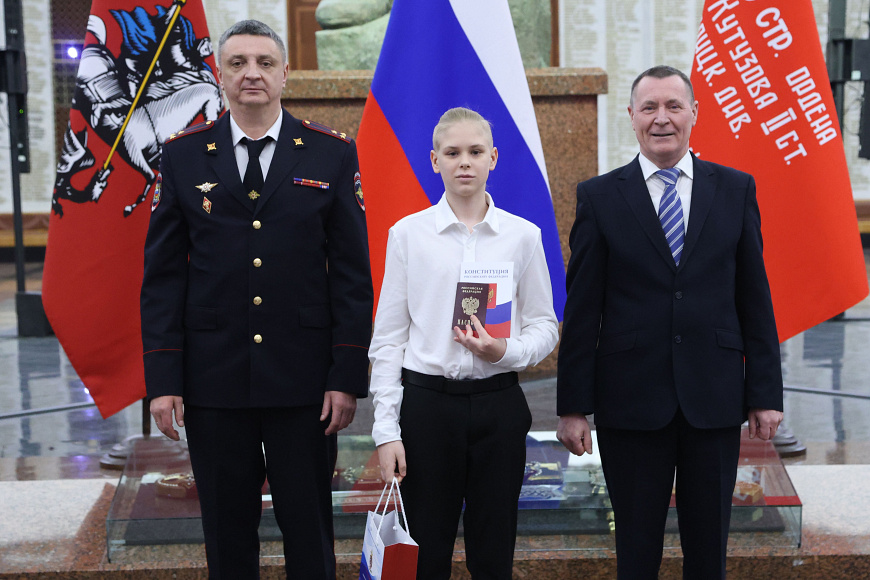 В преддверии Дня Конституции Российской Федерации в Зале Славы Музея Победы заместитель начальника Службы по вопросам гражданства и регистрации иностранных граждан Министерства внутренних дел Российской Федерации – начальник Департамента паспортной и регистрационной деятельности полковник полиции Дмитрий Сергиенко вручил юным гражданам первые паспорта.