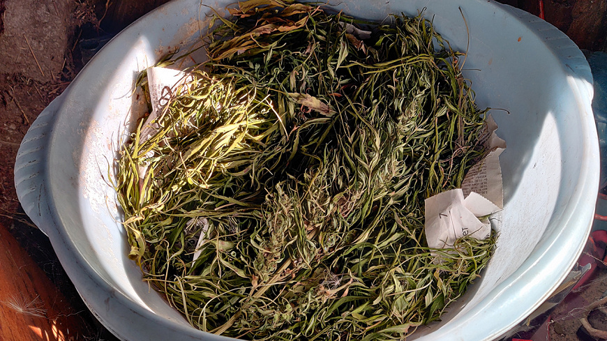При проведении оперативно-розыскных мероприятий и следственных действий факт хранения подтвердился. Полицейские обнаружили и изъяли в хозяйственной постройке наркотическое средство каннабис массой более 855 граммов, а также части наркосодержащего растения. Экспертиза показала, что это конопля массой более 6 килограммов.