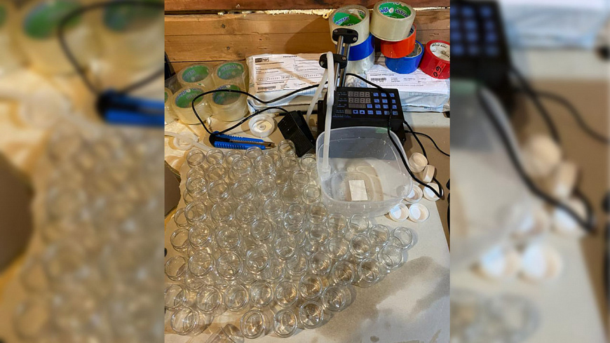 В ходе обысков был обнаружен склад сильнодействующих веществ, откуда изъяты полимерные бочки с веществом белого цвета, несколько десятков коробок, в которых хранились 200 тысяч капсул, приготовленных для отправки в другие регионы России, а также пакеты, ёмкости и приборы для фасовки, станок для упаковки капсул, электронные весы и другие вещественные доказательства. Проведённое исследование показало, что изъятое является сильнодействующим веществом – прегабалином общей массой порядка 78 кг.