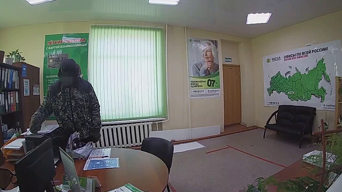Установлено, что налётчик накануне приходил в данную организацию, чтобы оформить кредит. Для сокрытия своей внешности при совершении преступления использовал маскировочную куртку и солнцезащитные очки. От этих вещей он потом избавился, спрятав в болотистой местности.
