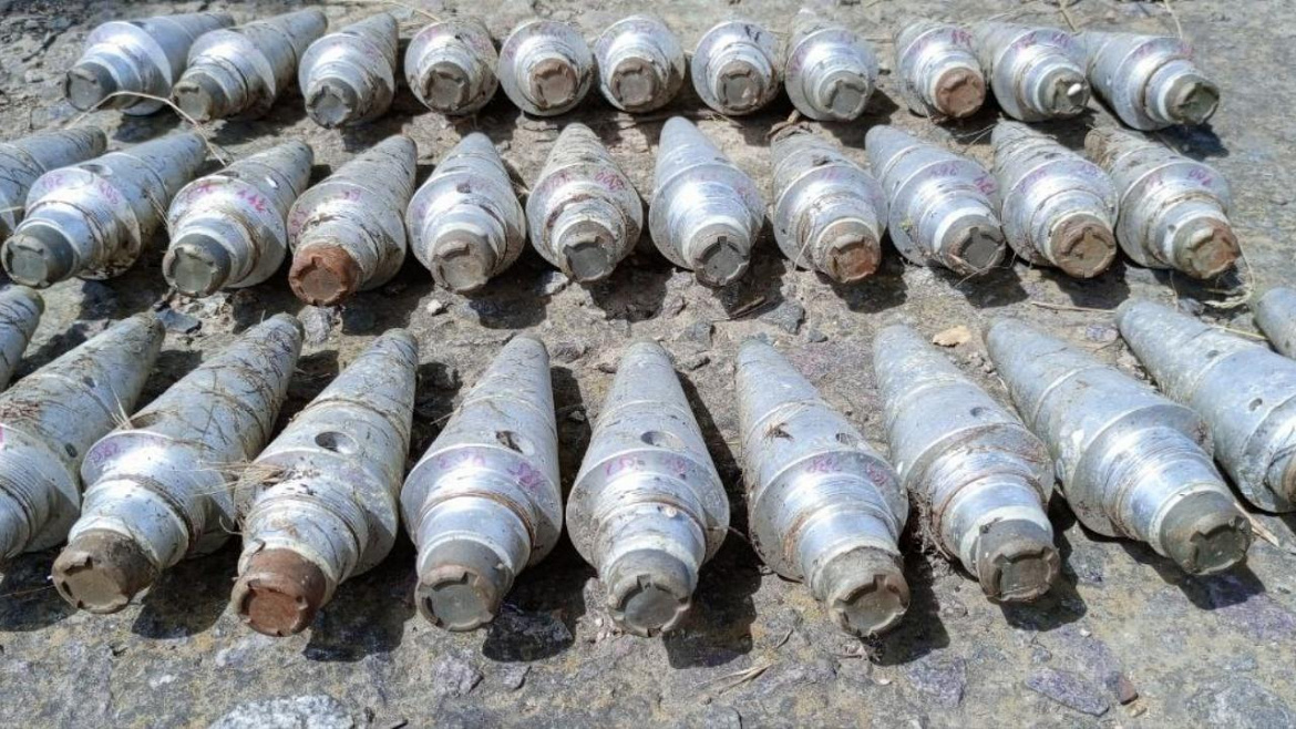В тайнике находились 34 взрывателя от реактивной системы залпового огня «Град». В связи с высокой степенью опасности предметов сотрудниками полиции было принято решение уничтожить боеприпасы накладным зарядом тротила.