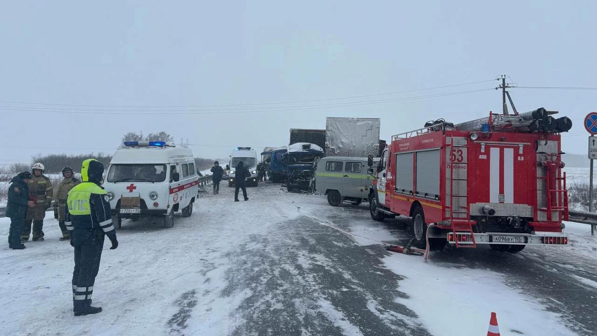 Прибывшими на место происшествия сотрудниками полиции предварительно установлено, что водитель большегрузного автомобиля «Вольво», двигаясь по вышеуказанной дороге в направлении города Омска, в районе 548 километра выехал на полосу встречного движения, где допустил столкновение с пассажирским автобусом ПАЗ (маршрут Омск – Крутинка). В дальнейшем произошло столкновение автомобиля «Тойота», двух КамАЗов и «Вольво».