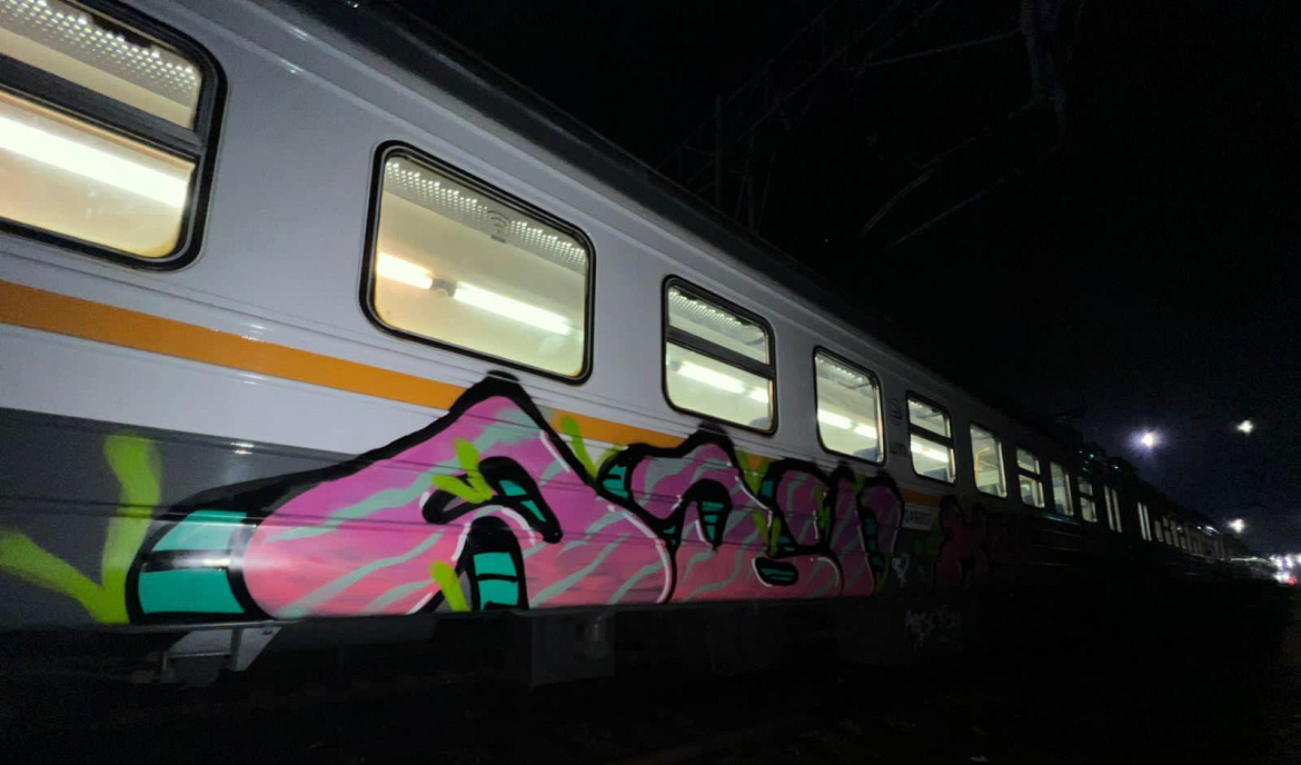 Сотрудники линейного управления МВД России на станции Москва – Курская в ходе проведения оперативных мероприятий в тупиках станции Есино Горьковского направления МЖД пресекли нанесение граффити на электропоезд.