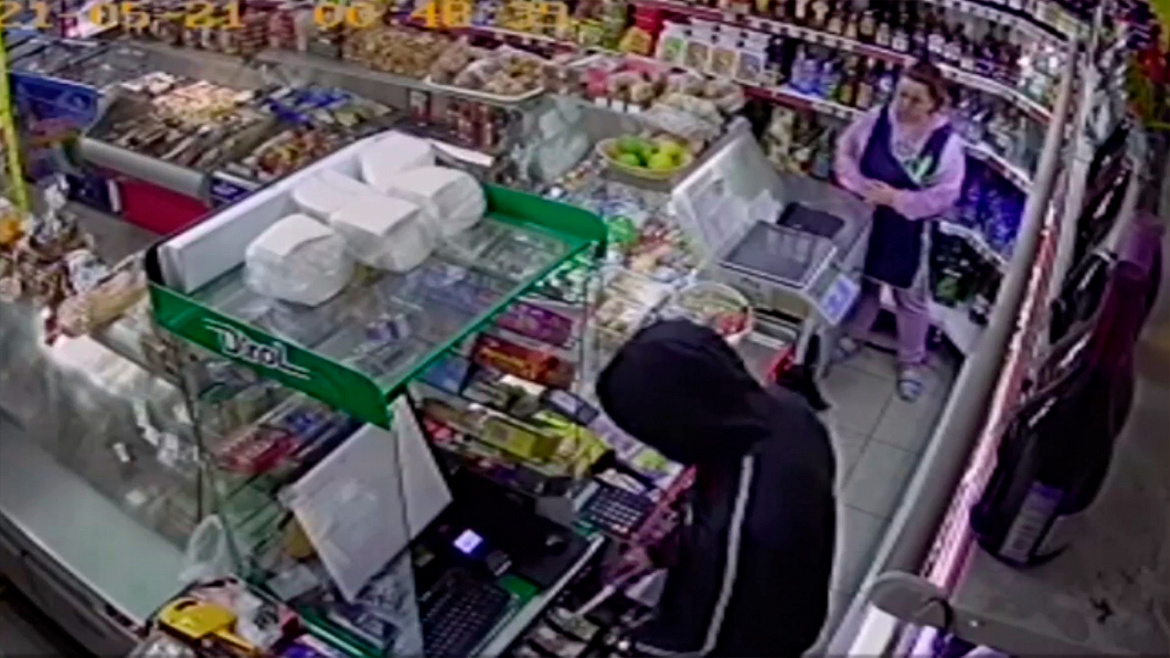 Установлено, что в ночное время злоумышленник в капюшоне и медицинской маске зашёл в продуктовый магазин следом за кассиром, которая его не заметила. Спрятавшись в подсобном помещении, где находился телевизор с выведенными на него камерами видеонаблюдения, мужчина начал следить за работницей торговой точки. Дождавшись удобного момента, он совершил на неё нападение. Угрожая ножом, злоумышленник похитил из кассы денежные средства и скрылся.