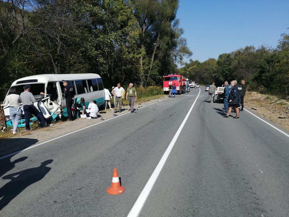 По предварительным данным, 59-летний мужчина, управляя автомобилем Toyota Hilux, двигался со стороны посёлка Славянка в направлении посёлка Раздольное. Водитель транспортного средства не обеспечил постоянного контроля за движением автомобиля, совершил выезд на полосу встречного движения, где столкнулся с автобусом, осуществлявшим перевозку пассажиров.